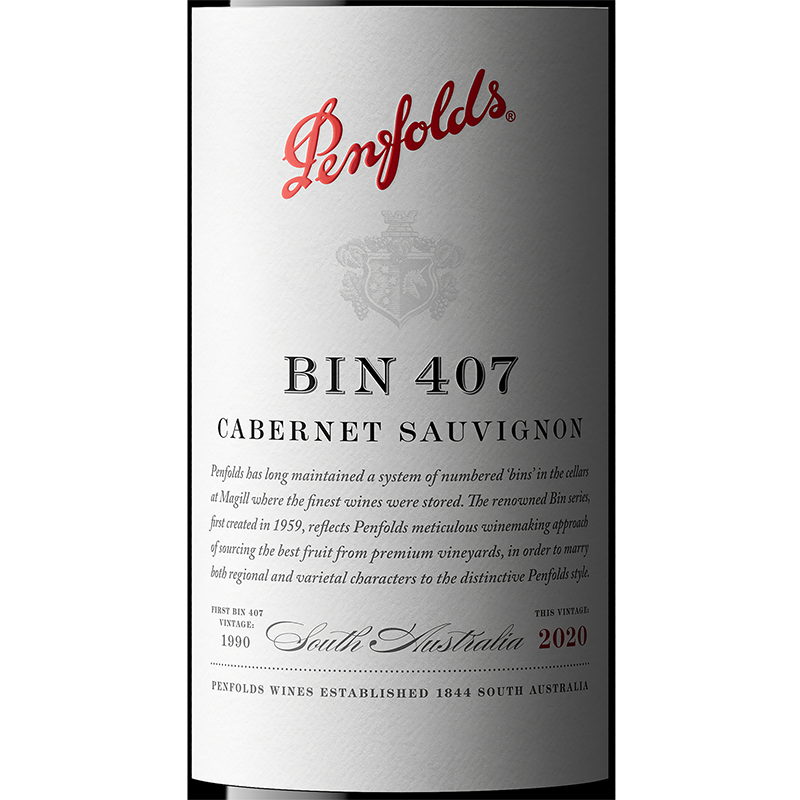 - ビン407は、グレードの高いカベルネ・ソーヴィニヨンの収穫量が増えたことから製造可能となったワインです。『カベルネのグランジ』とも呼ばれるビン707にインスピレーションを得たビン407は、品質の特徴と飲みやすさとともに、ストラクチャーと深みのある味わいを持っています。カベルネ・ソーヴィニヨンのお手本ともいえる品種の特徴を明確に持つビン407は、ペンフォールズが得意とする複数の地区の畑のキュヴェをブレンドする技術をいかしたワインで、熟成にはビン707で使用した1~2年目の樽も使用します。
