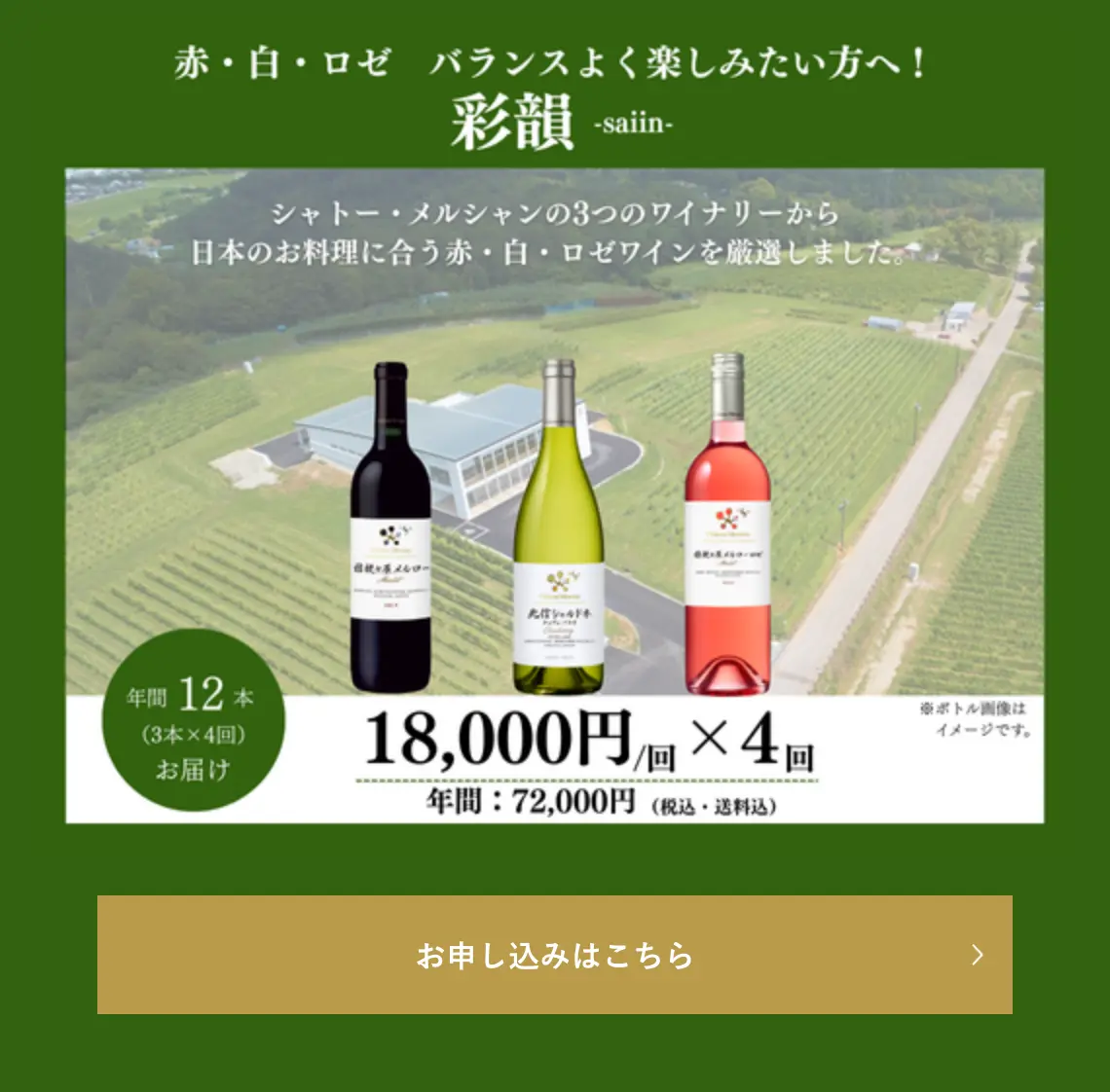 - ・シャトー・メルシャンonline会員規約「第3条 本サービスの内容と利用」が適用となります。