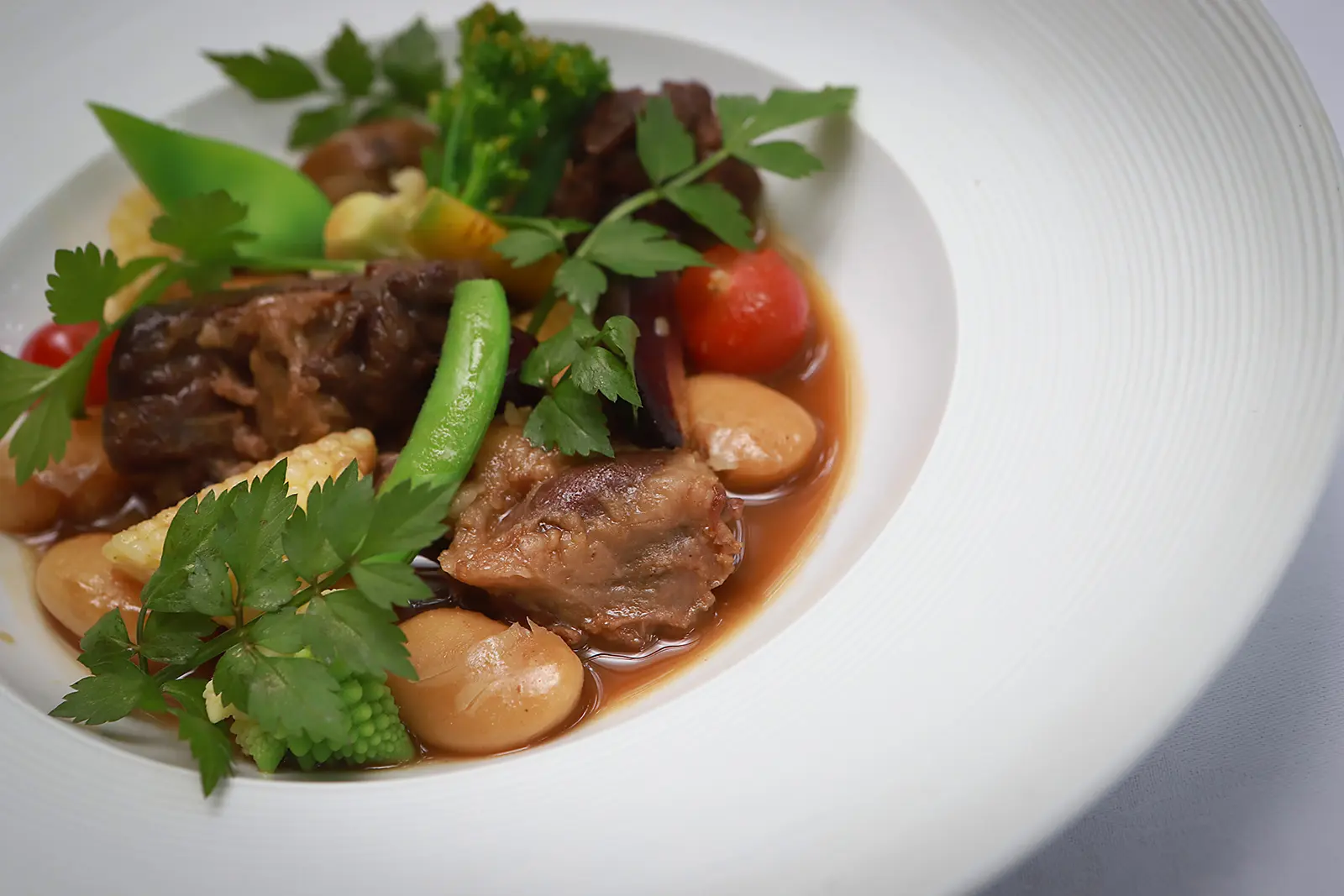ここに野菜を合わせてアクセントとしているが、なかでも花豆が良い仕事をしており、全体の味をまとめるどっしりとした土台となっている。