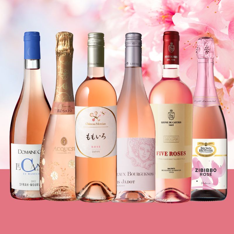 そんなフランスのロゼに加えて、日本やイタリアのロゼ、さらにスパークリングワインもセットにしました。ブドウ品種や産地によって生じる味わいの違いをお楽しみください。